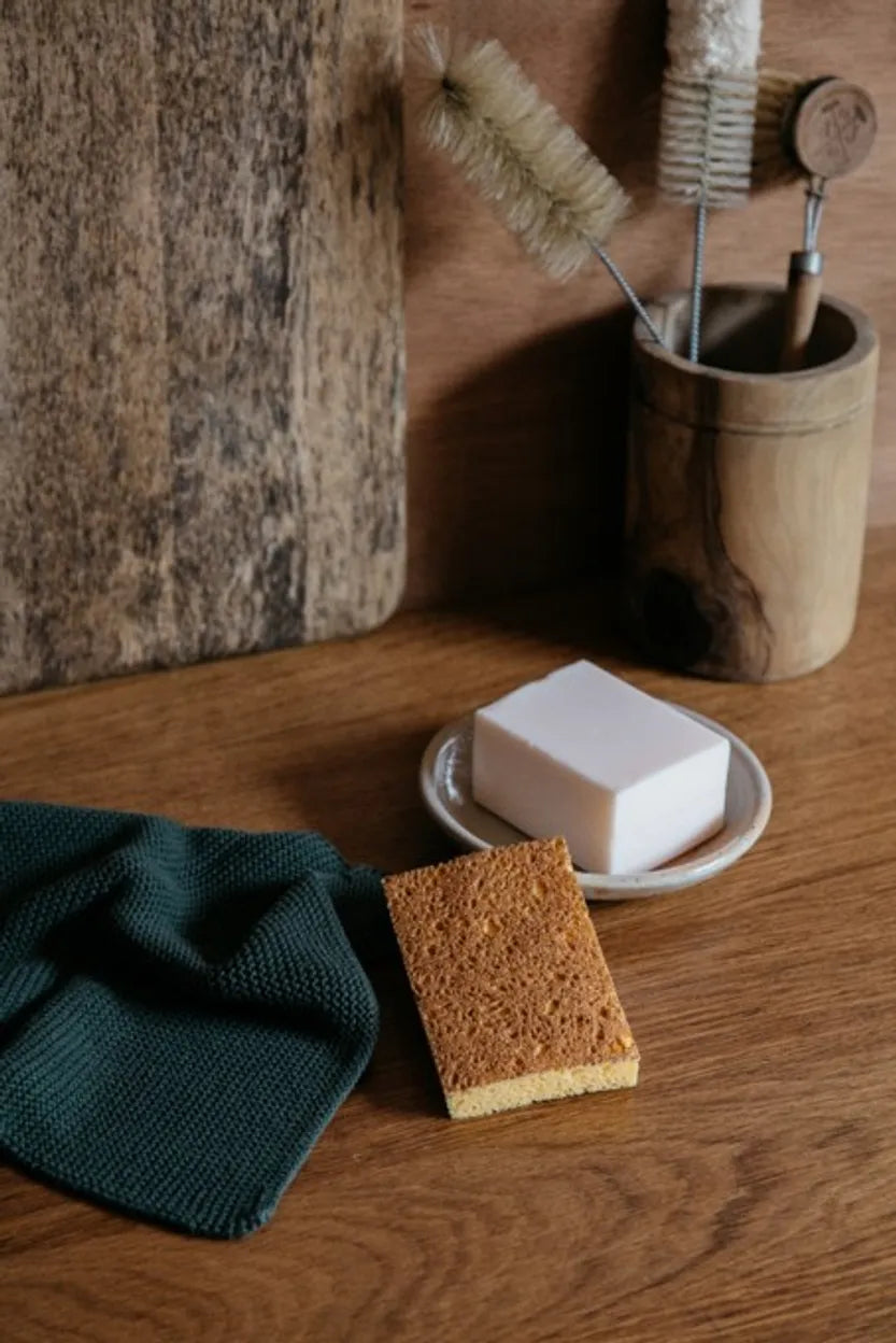 Tuff disksvamp i naturmaterial för skonsam och miljövänlig diskning och städning
