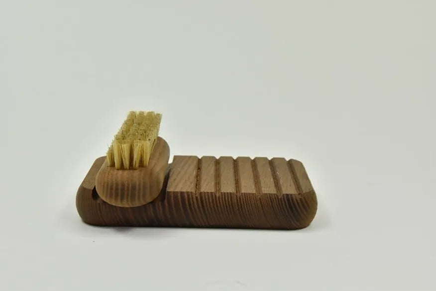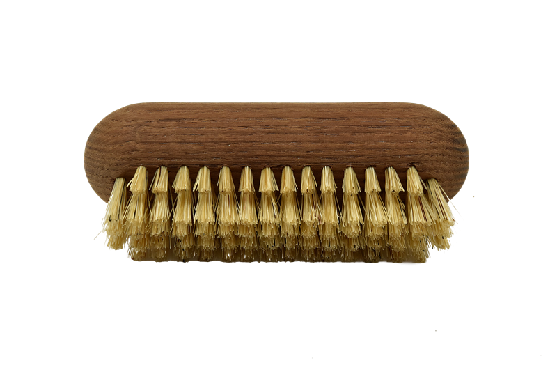 Nagelborsten är en viktig accessoar för att vårda händer och naglar. Denna nagelborste i naturmaterial är tillverkad av värmebehandlad ask och borst och har en rad med korta fibrer som tar bort envis smuts från och under naglarna. Resten av borsten har längre fibrer för att försiktigt borsta och tvätta rent dina händer och fingrar. Den ergonomiska formen passar också perfekt i handen och nagelborstens kvalitet gör att du kan använda den varje dag. Den enkla designen passar också perfekt i alla badrum.