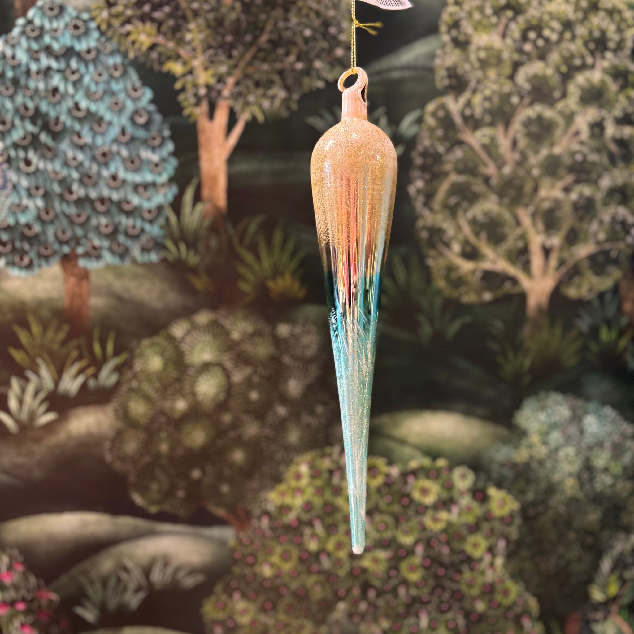 Glass Icicle White/Green 25cm