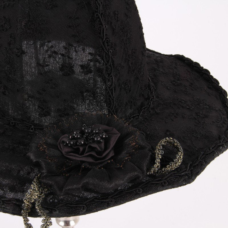 Denna svarta skärm är framtagen special och finns inte i vårt ordinarie sortiment men tar hem special till dig. Tycker det är roligt att visa vad som finns för dig som söker det lilla extra från mässan i Paris. Handgjord och annorlunda hattformad lampskärm som är broderad och gjord av spets. Dekorerad med 1 stor blomma och flätad kant.