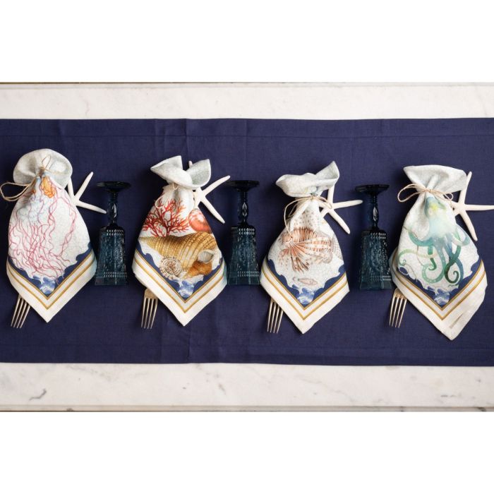 Fyra underbara linneservetter från Toscana i fyra olika matchande motiv och i originella mönster.