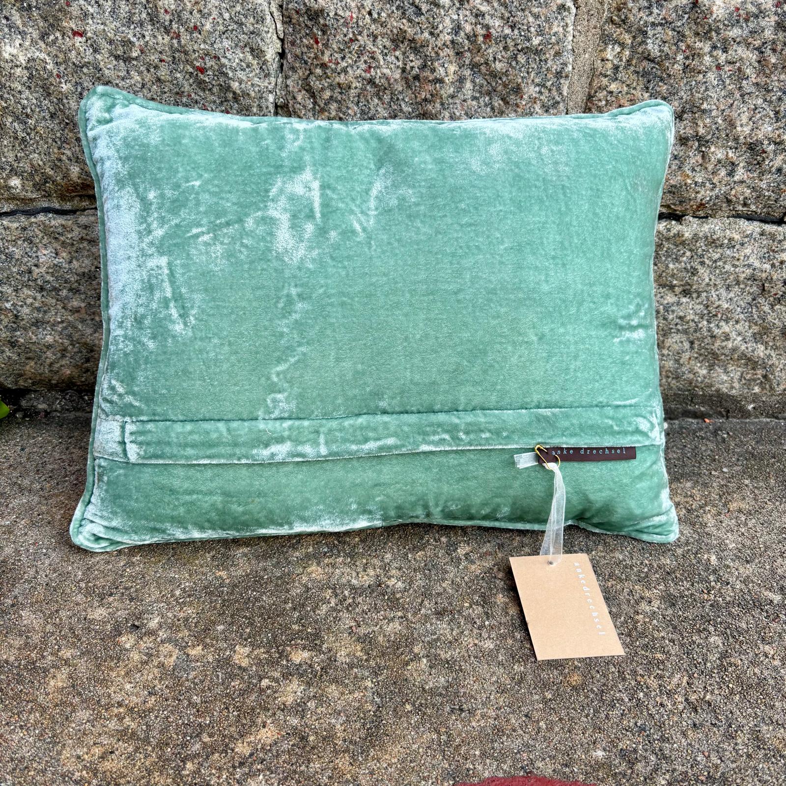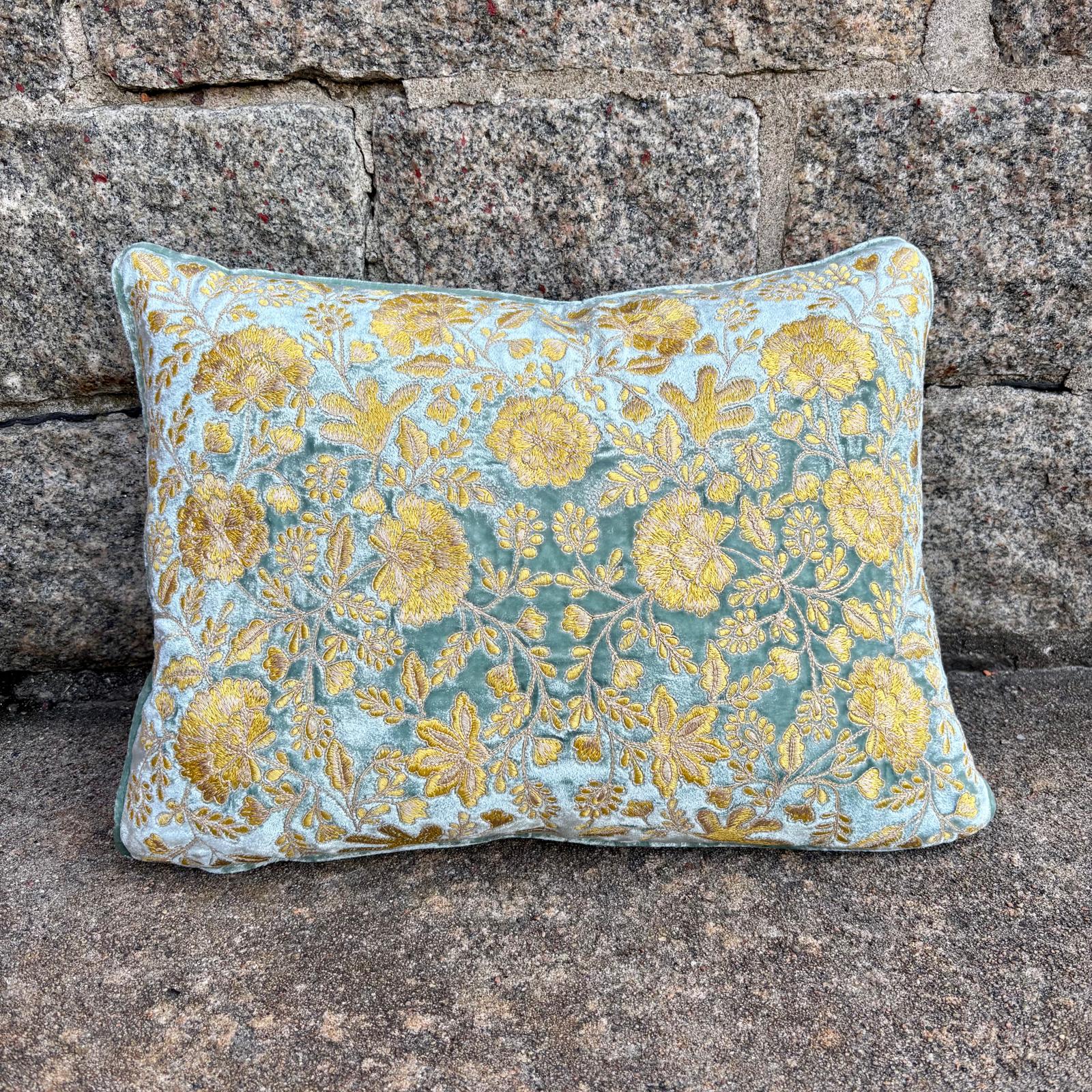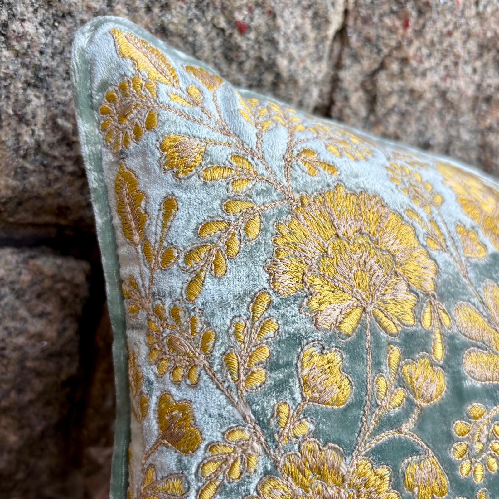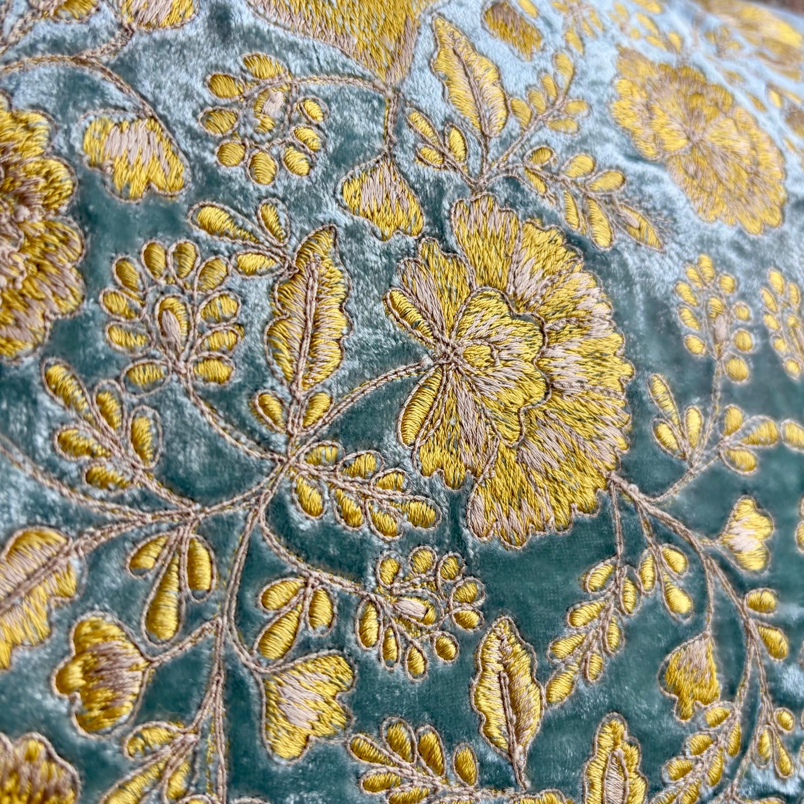 Handsydd vacker kudde med ett ljuvligt vacker broderi som ger kudden den lilla extra lyxen. Just detta broderi är en nyhet och kan göras på många olika silkes sammets färger,